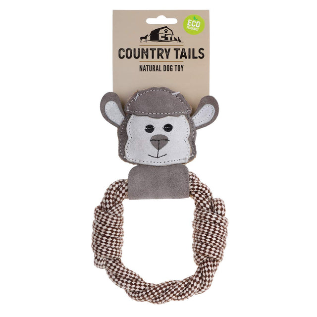 Country Tails - Rope Ring with Animal Suede Head -A Premium Dog Toy