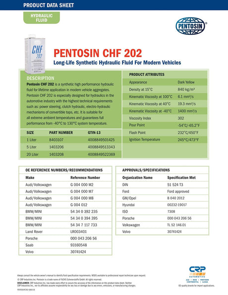 Pentosin 8403107 Hydraulic Fluid Chf202 1L