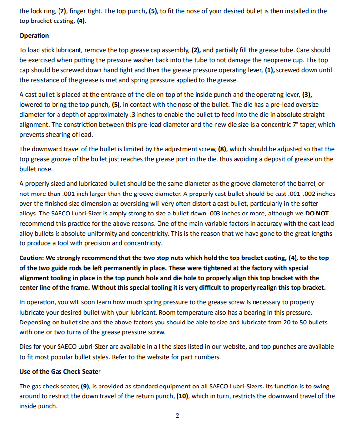 The two hooks of this clamp are hooked over the two side ears of the back of the main Lubri-Sizer casting which is then clamped over the edge of the bench. In the event you wish to bolt your Lubri-Sizer directly to the edge of your work bench or to a steel plate, holes for this purpose are provided in the main body.