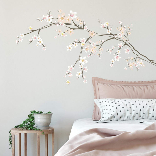REFRESH A ROOM WITH CHERRY BLOSSOM BRANCH PEEL AND STICK GIANT WALL DECALS WITH 3D EMBELLISHMENTS.